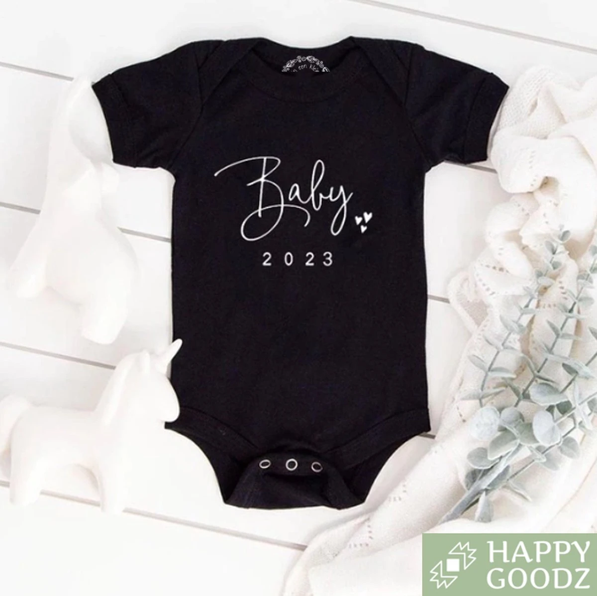 Een mooie zwarte romper om als cadeau te geven aan alle baby’s die geboren worden in 2023.
