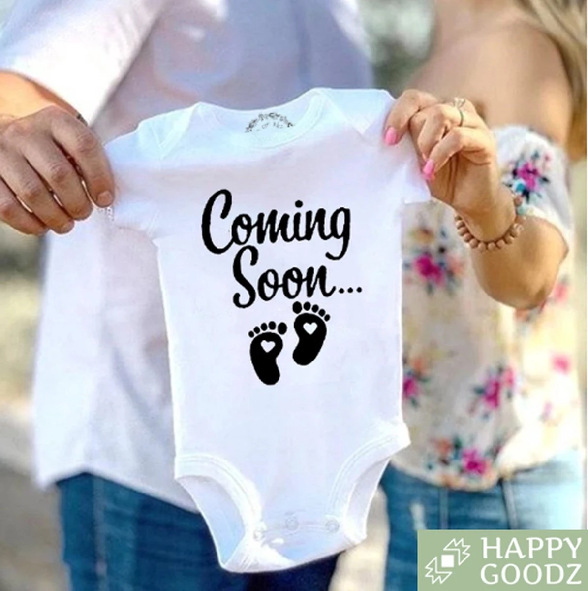 Deze romper is gemaakt van een 100% katoen met de opdruk ‘Coming Soonen aan de binnenkant bedrukt: Geluk zit in een klein rompertje’. Deze goed ademende stof is ideaal voor je kleintje.