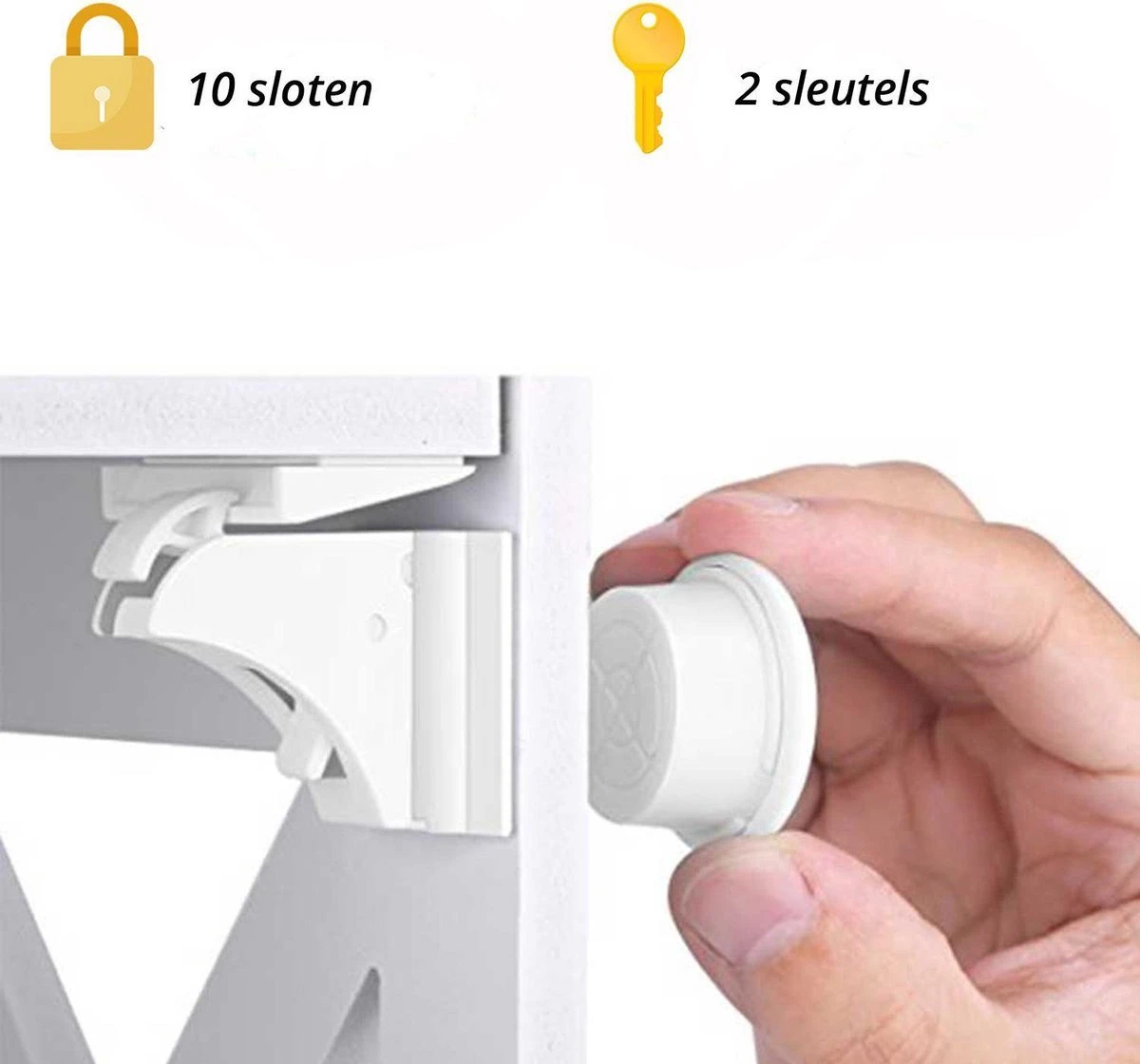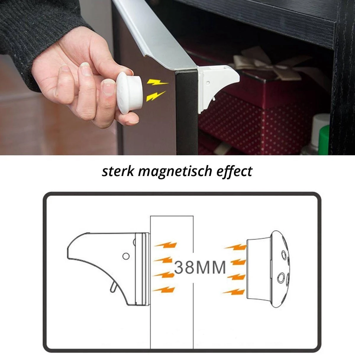 Maak van uw huis een veiligere plek waar uw kind kan spelen en ontdekken. Maak lades en kastdeuren verboden terrein voor uw nieuwsgierige kind met deze sloten die openen met een magnetische sleutel die gemakkelijk buiten hun bereik kan worden opgeborgen.