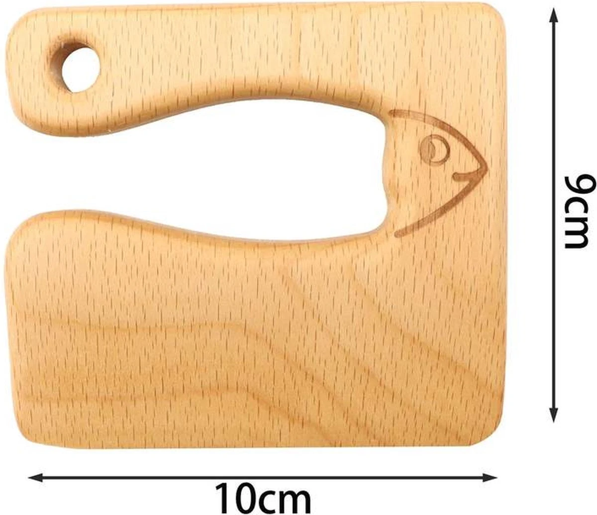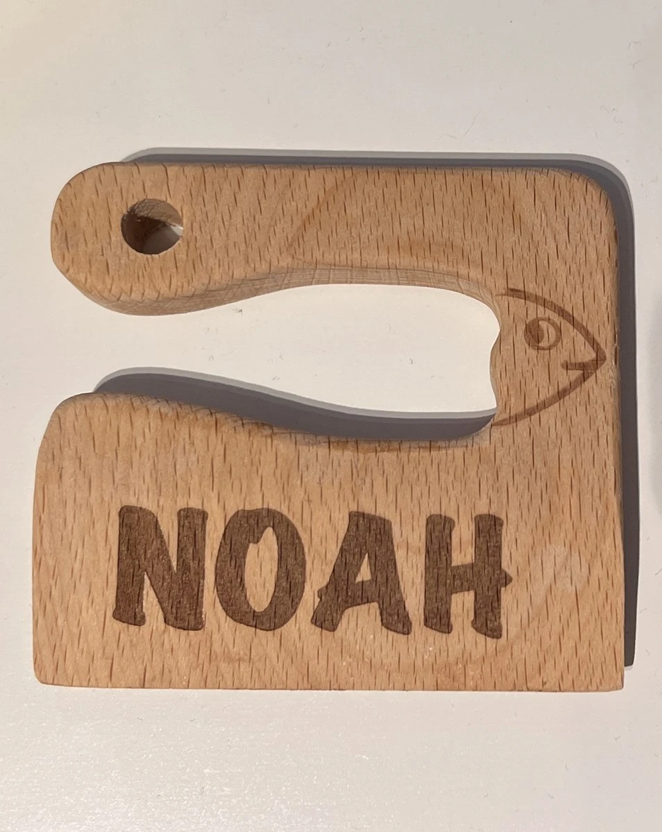 Deze mes is gemaakt van massief hout met gepolijste randen. De mes is scherp genoeg om door fruit, groente en brood te snijden, maar nog steeds veilig voor kinderen.