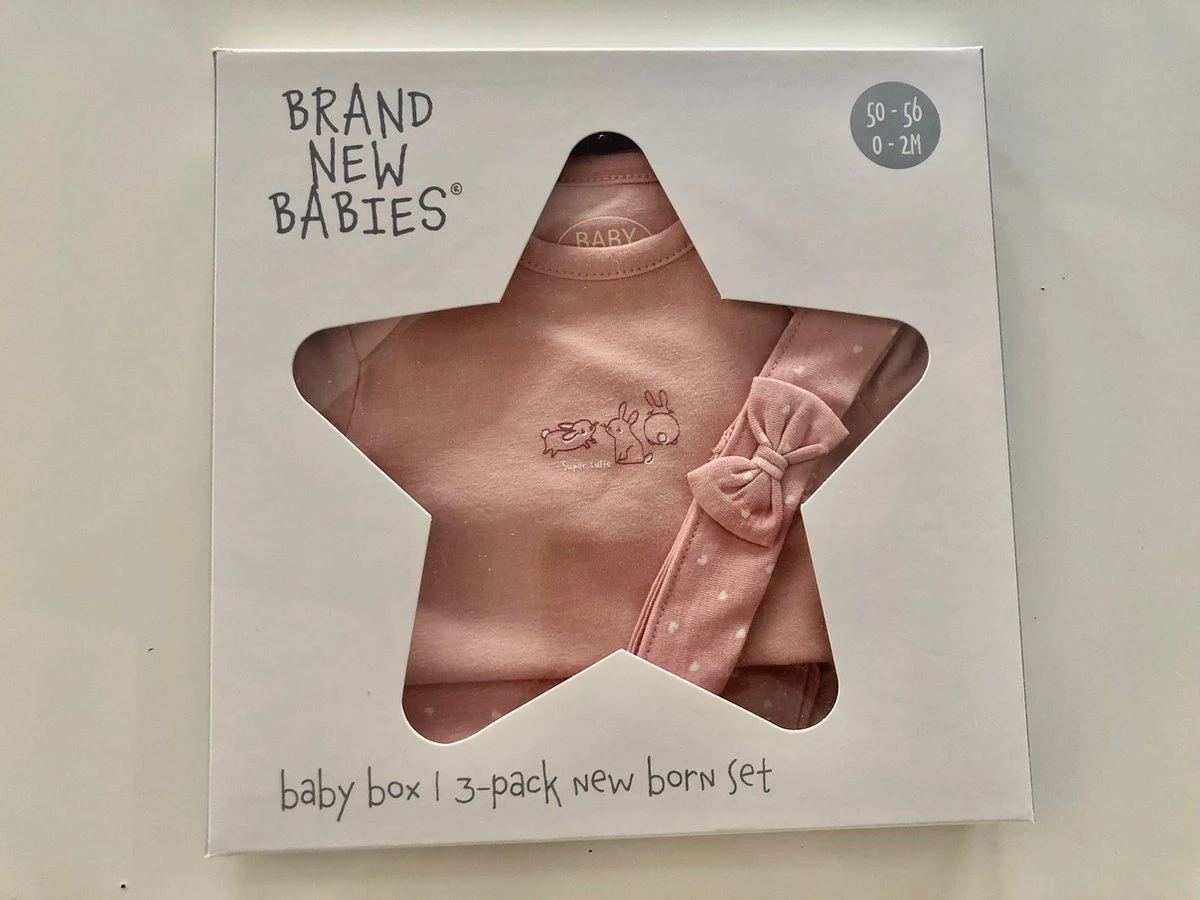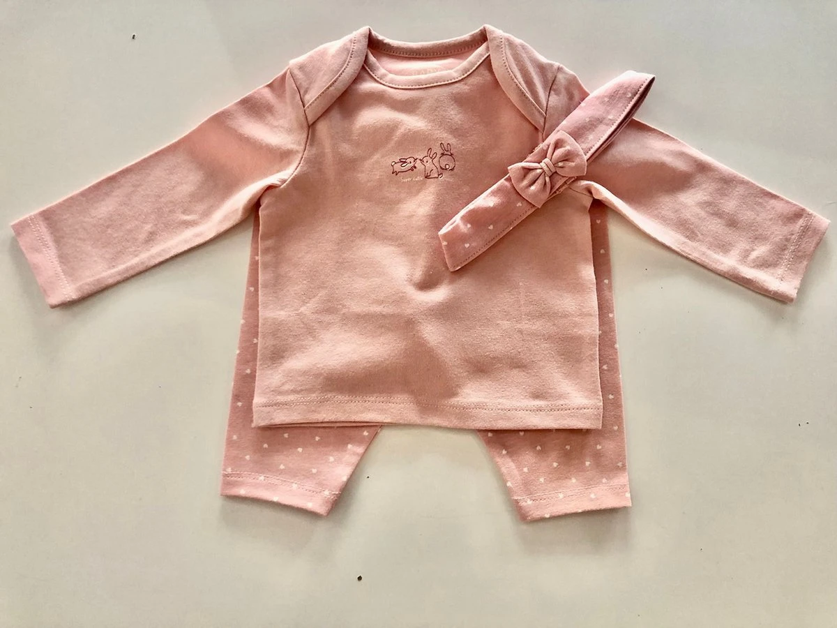 Baby 3-delige newborn giftset; top, broekje & haarbandje van 95%katoen-5%elastane stretch