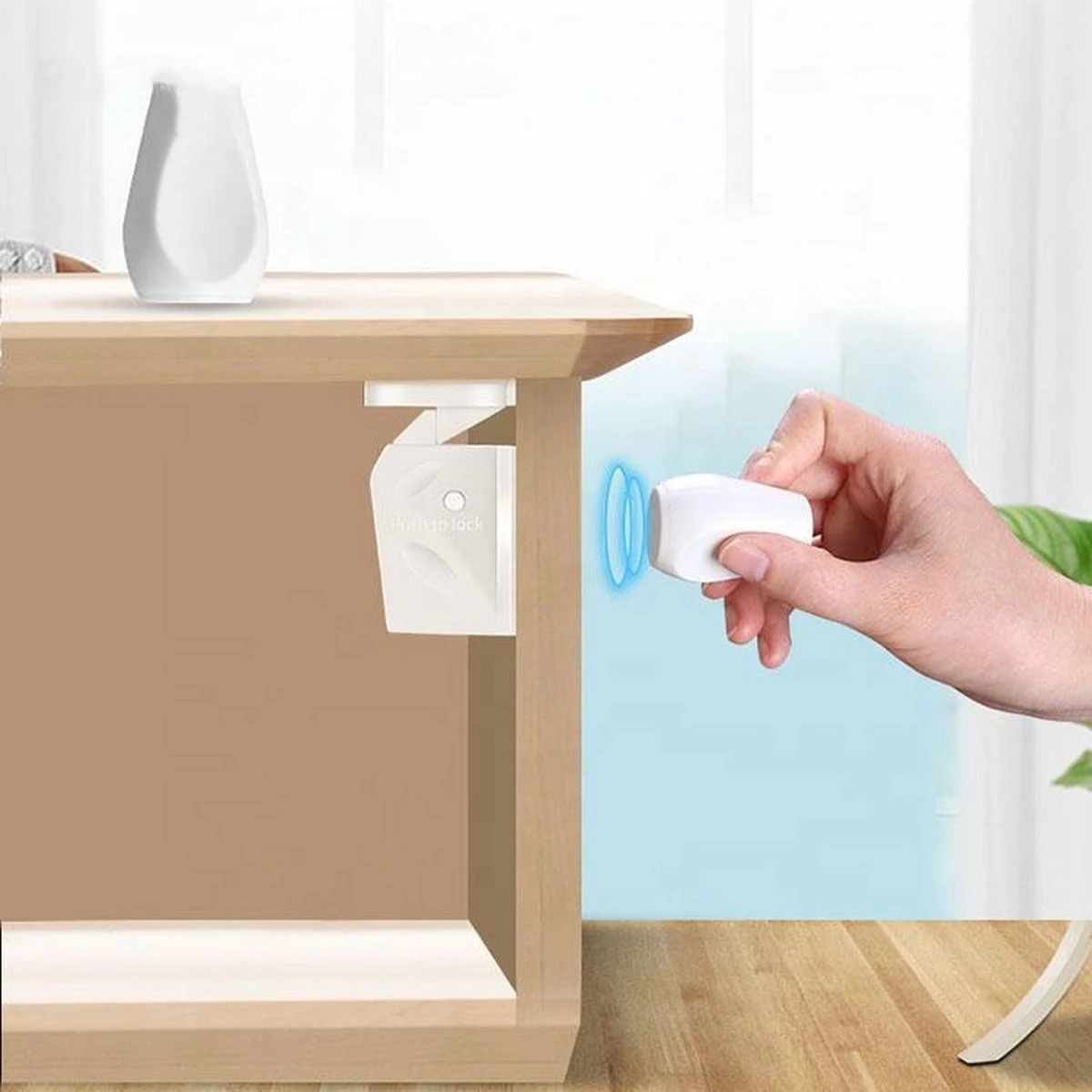 Het is een zelfklevend magnetisch slot welke je alleen gemakkelijk kan openen met een magnetische sleutel. Houd de sleutel tegen de deur/lade op de plek waar je het slot hebt bevestigd en voilà het slot is open. Door het kastje/lade weer dicht te doen is het mechanisme weer volledig op slot.