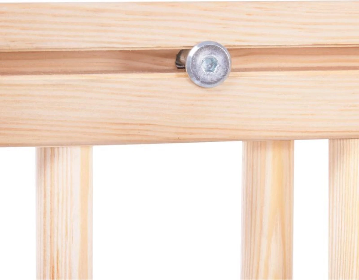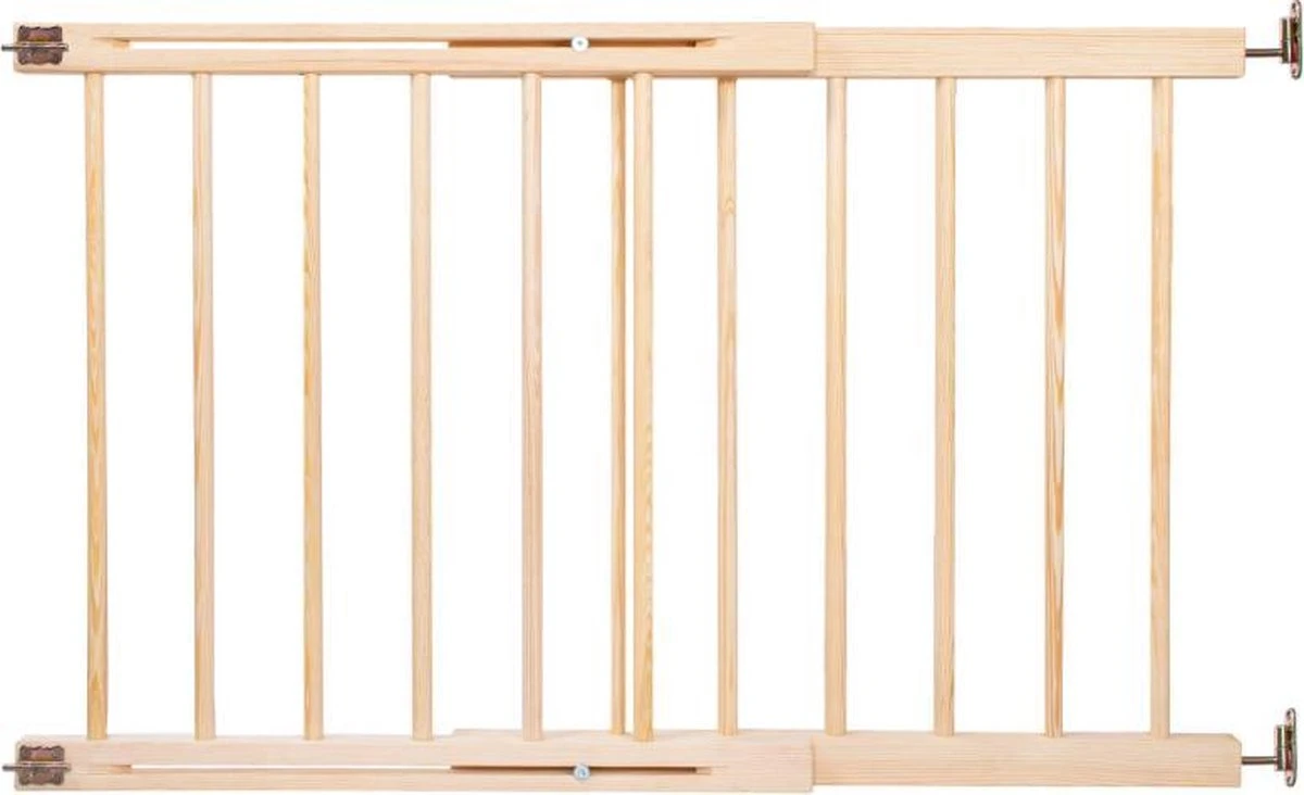 Een houten, massief veiligheidshek voor kinderen of kleine en middelgrote dieren is een product dat de veiligheid in woningen vergroot . De poort kan bepaalde delen van het huis scheiden die gevaarlijk zijn voor u kinderen. Het beschermt trappen of deuren tegen ongecontroleerde toegang door kinderen. Het traphekje kan worden geïnstalleerd door het aan de muur, trap, frame, lambrisering en vele andere oppervlakken te bevestigen. De mogelijkheid om de breedte aan te passen van 72 tot 122 cm zorgt ervoor dat het zich aanpast aan afmeting van uw doorgang