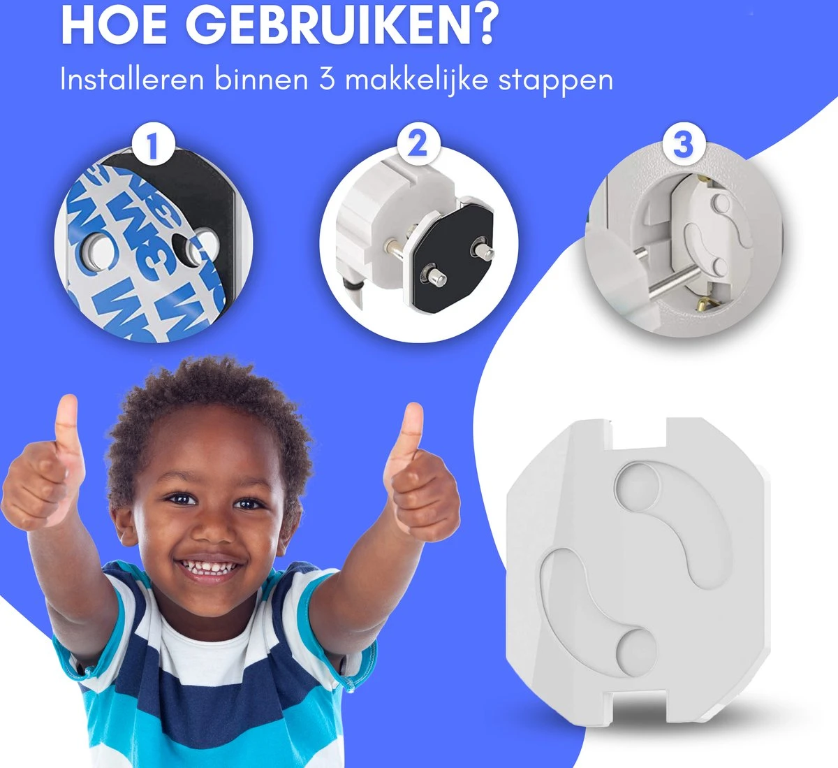 Door het gebruik van professionele 3M plakstrips blijven de stopcontactbeschermers extreem goed zitten. Eenmaal geplakt zal jouw kind deze dus nooit meer los krijgen. De set wordt geleverd met 12 stopcontactbeschermers zodat elk stopcontact afgedekt kan worden. Maar maak jezelf geen zorgen, wanneer jouw kind is opgegroeid en de beveiliging niet meer nodig is zijn de beschermers verwijderbaar.