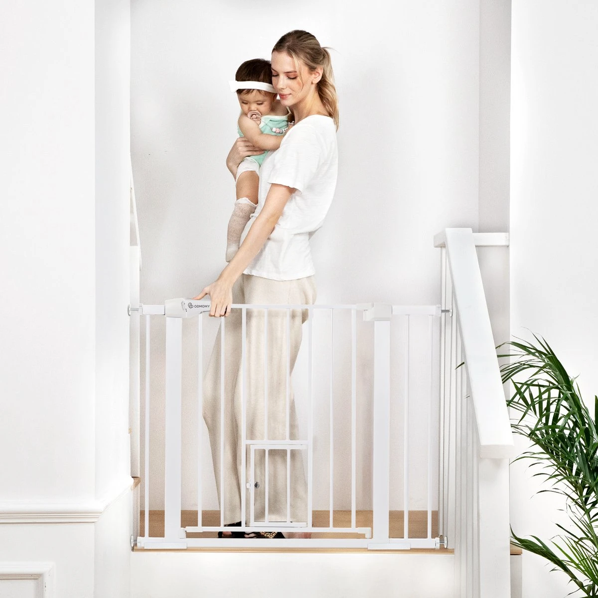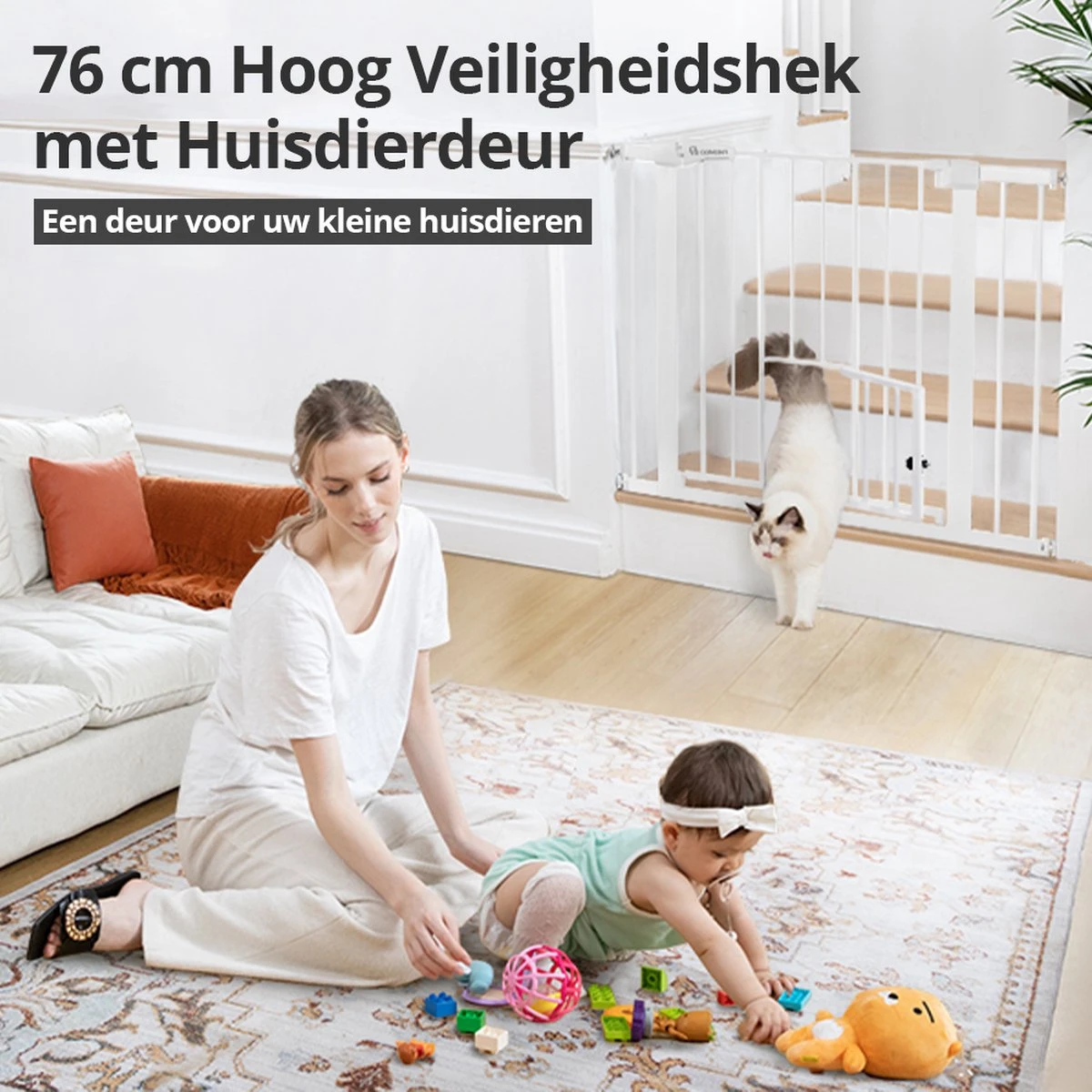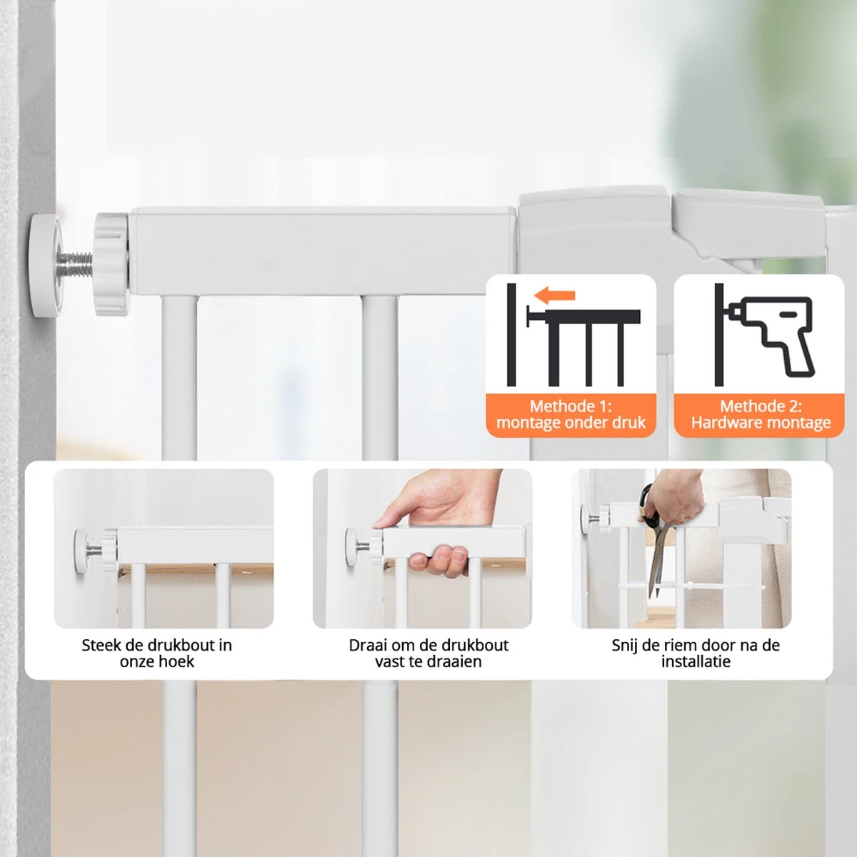 [Met dit hek hoeft u geen gaten in de muur te boren.] [Geschikt voor installatie in deurbreedtes van 75-103cm] [Gelieve nauwkeurig te meten alvorens te kopen] EXTRA BREED EN UITBREIDBAAR