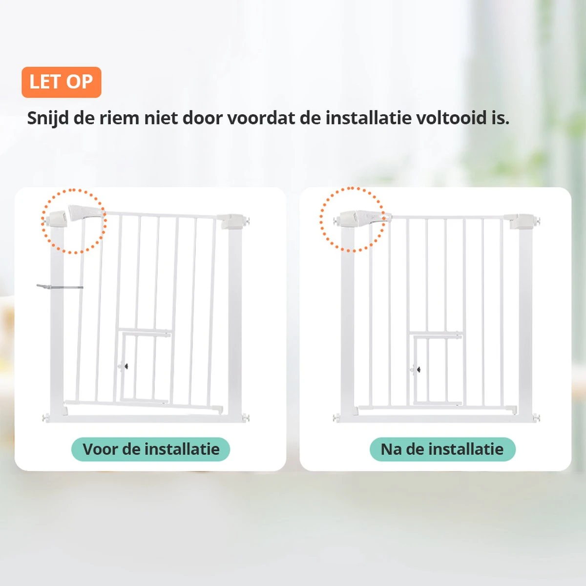 EASY INSTALLATIE – Dankzij de no-drill snap-on beugel kan het veiligheidshekje snel worden geïnstalleerd. Houd er rekening mee dat er vóór de installatie een opening is tussen de deurklink en het frame, dit is geen defect en zal na de installatie worden geëlimineerd.