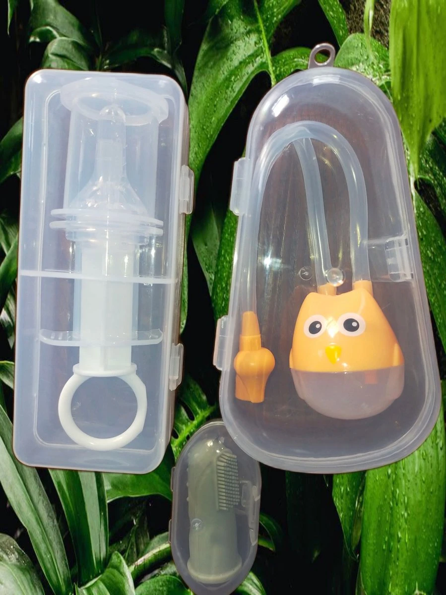 *Heeft je kindje een vloeibaar kuurtje gekregen? Dan is de MEDICIJN DISPENSER ideaal, dit is een spuit met een speen erop, waardoor je kindje het medicijn naar binnen kan zuigen.