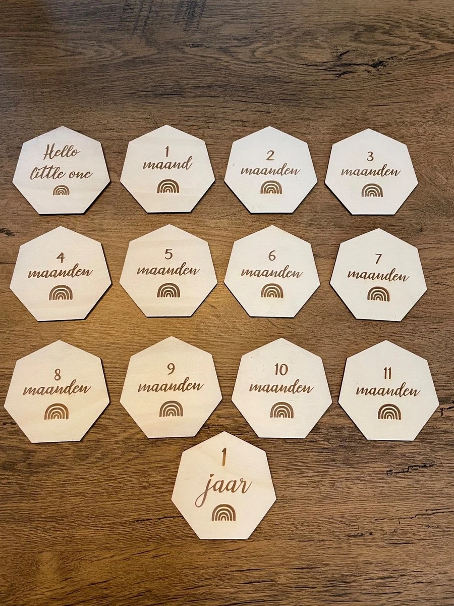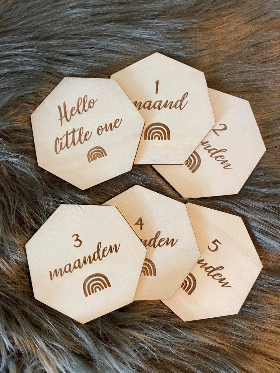 Alle mooie leeftijden in het eerste jaar vastleggen. De bordjes zijn licht van gewicht en doorsnede is 9 centimeter. Gemaakt van populieren multiplex hout van 4mm.