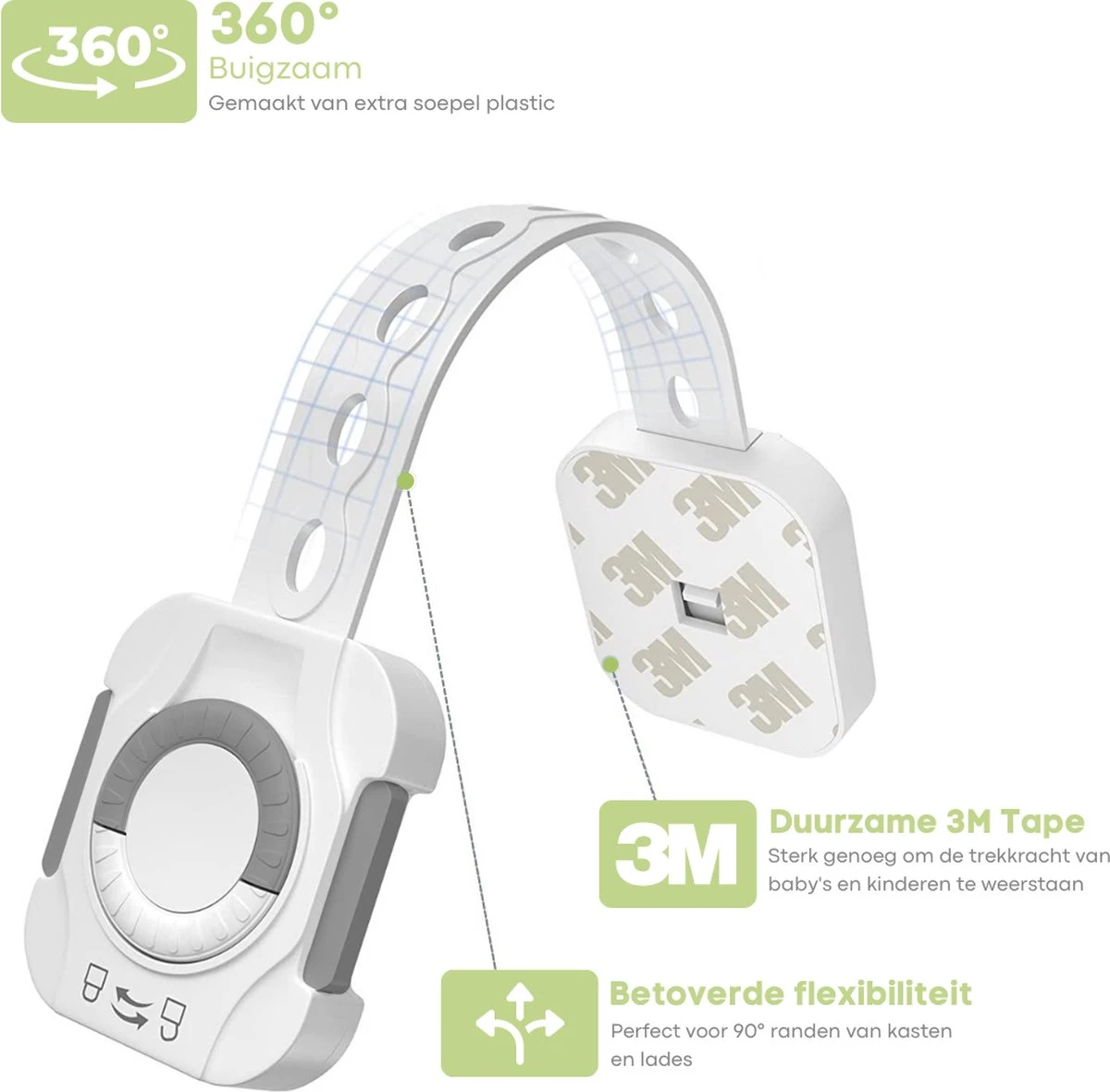 Schoonmaakmiddelen, Medicijnen of scherpe voorwerpen; als ouder moet je er niet aan denken dat je kind in aanraking komt met dit soort gevaarlijke dingen! Helaas kan je natuurlijk niet 24/7 op je kind letten. Laat daarom onze Premium zelfklevende veiligheidsloten van Monno het werk voor jou doen! Deze extra stevige sloten zijn ontwikkeld om jouw huis weer helemaal babyproof te maken. Zo kan je je kind weer met een gerust hart het huis laten ontdekken.