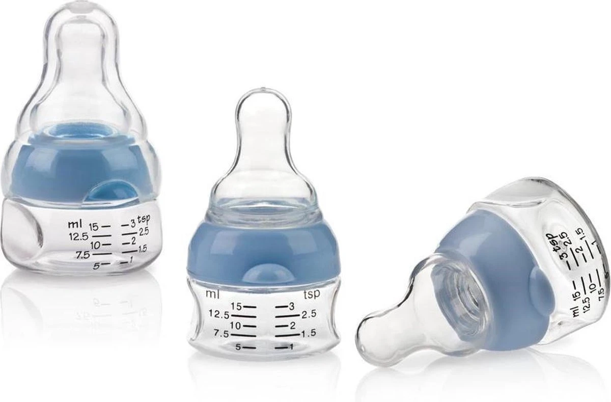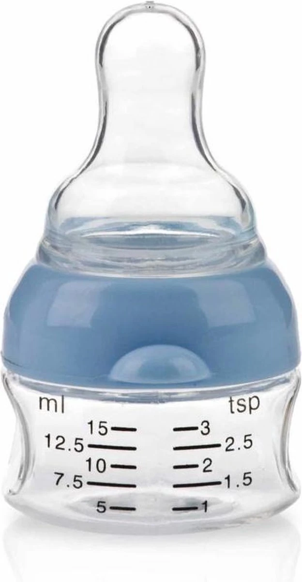 Het miniflesje is een ideaal hulpmiddel voor het toedienen van vloeibare medicatie en vitamines aan een baby. De onaangename geurtjes van medicatie en vitamines zullen je baby niet meer hinderen met dit drinkflesje. De doseringen kunnen zowel in aantal theelepels als milliliters worden gemeten. Het miniflesje is, door de inkepingen, makkelijk vast te houden met kinderhandjes. Het biedt een nette en betrouwbare manier om je baby te verzorgen.