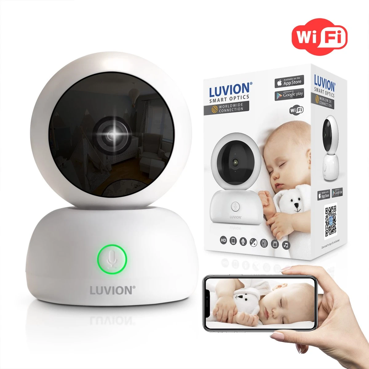 Met de Luvion Smartoptics HD Wifi Camera ben je altijd verbonden! Thuis op de bank of wanneer de kleine bij de oppas is, je kunt altijd en overal meekijken via je smartphone of tablet.