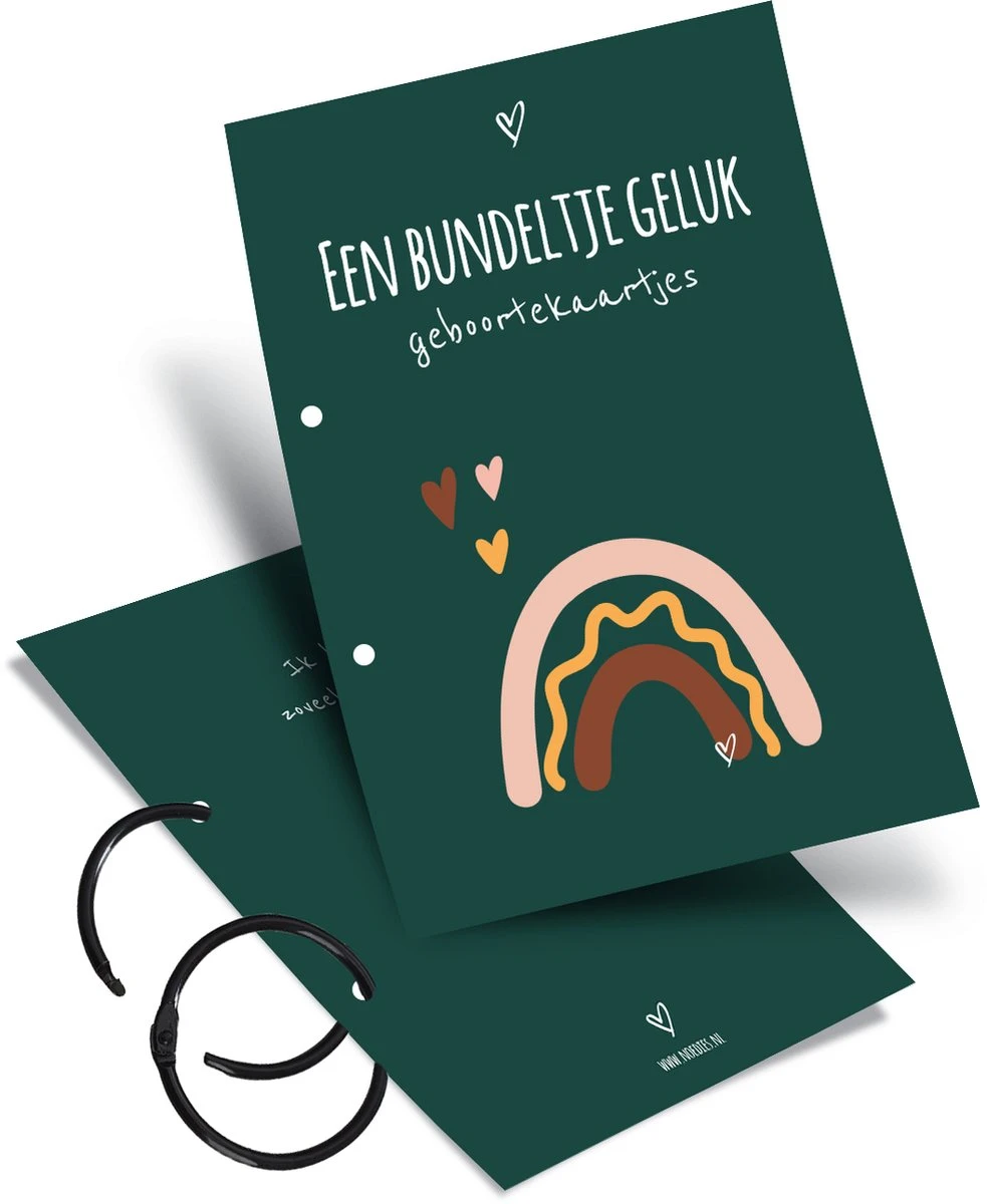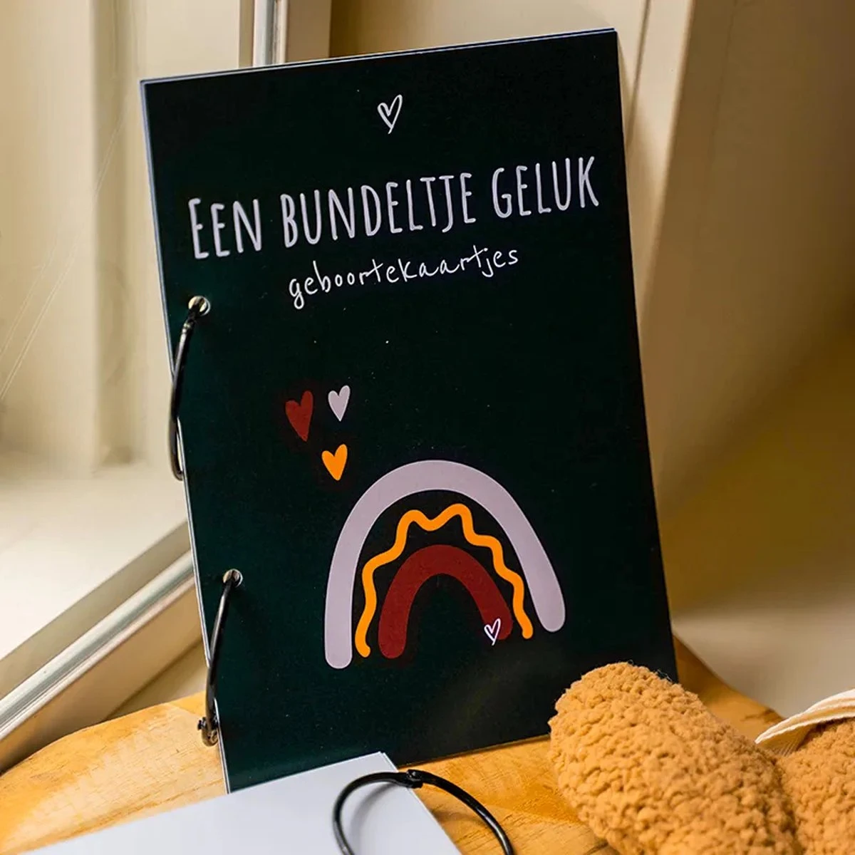 Die eerste weken na de geboorte van jullie kleine wondertje vliegen voorbij. Weet jij nog precies wat tante Lien aan jouw kleintje schreef? En waar láát je al die lieve geboortewensen? Je bundelt ze gemakkelijk in deze mooie bewaarbundel. Met schattige regenboog en verkrijgbaar in maar liefst vier kleuren.