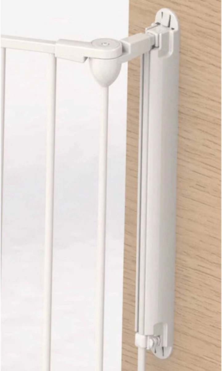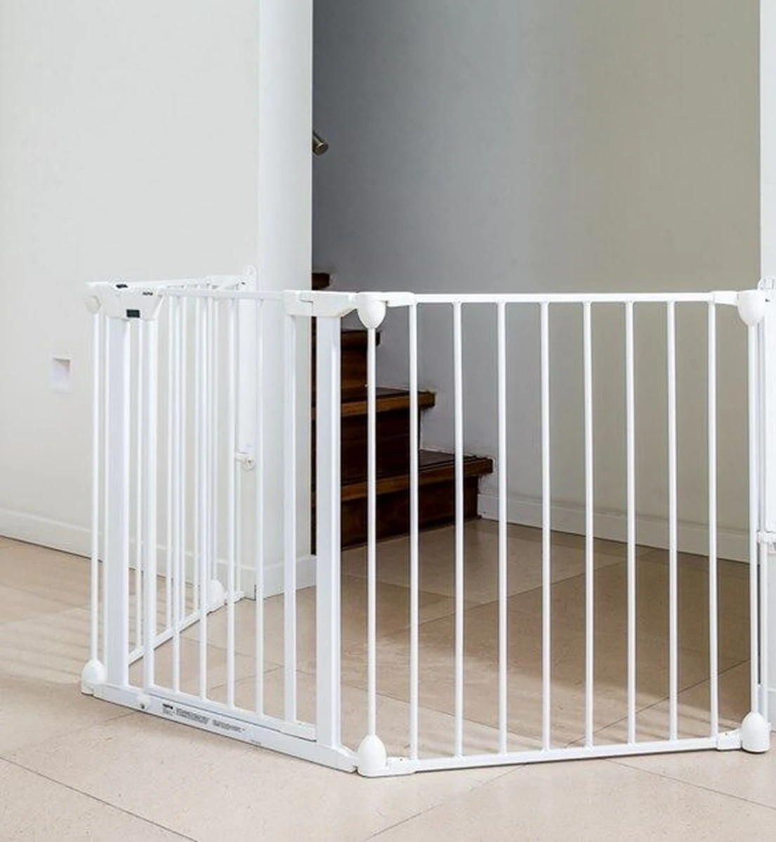 Met de Noma 3-delige kamerverdeler kun je grote en kleine ruimtes afsluiten of veilig stellen voor je kleine. Het multifunctionele veiligheidshek is speciaal ontworpen voor grotere openingen, tot een maximale lengte van maar liefst 197.5 cm. Het traphekje kan zowel dienen als traphek, kamerverdeler, box, en haardhek. Je kunt het hek dankzij de 3 afzonderlijke panelen zowel schuin als recht plaatsen.