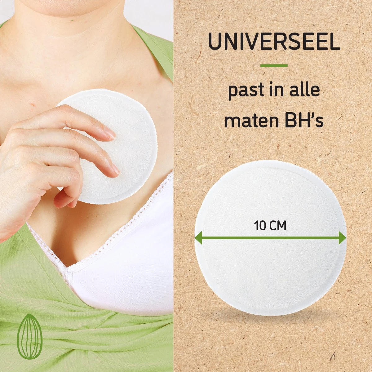 Een milieuvriendelijke oplossing voor een natuurlijk probleem. De Nutty Green herbruikbare hypoallergeen bamboe zoogcompressen helpen jou en de wereld! 12 witte compressen met een afmeting van 10 centimeter, hierdoor passen ze in elke maat BH. Gemaakt van 90% bamboe en 10% katoen, waardoor ze ultrazacht zijn en ademend. Inclusief wasnetje om de wasbare zoogkompressen netjes bij elkaar te houden. Voorkom ontstekingen door plastic wegwerp pads of hoge kosten voor wegwerp compressen. Welkom bij onze Nutty Green Zero Waste Lifestyle familie!