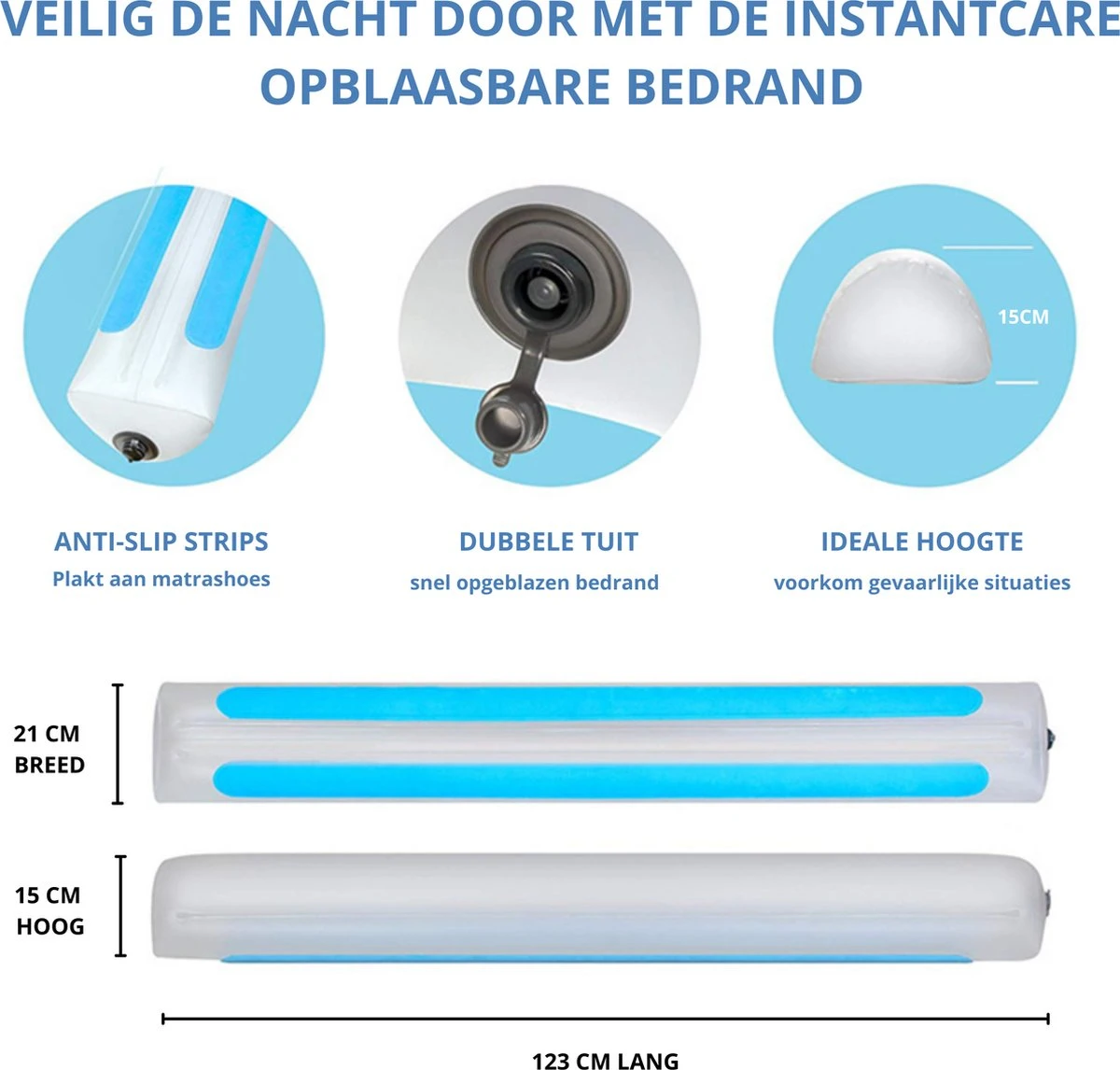 Bestel vandaag nog de opblaasbare bedrand van Instantcare en voorkom gevaarlijke situaties!