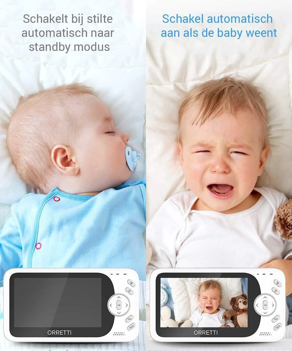 Deze V10 Orretti babyfoon met Nederlandstalige handleiding is het neusje van de zalm van de V-series. Met zijn bereik van maar liefst 300 meter (buiten), een krachtige 1760mAh batterij die zorgt voor langere standby tijd en EXTRA groot LCD scherm van 480 x 272 pixel (4,3 inch) overtreft de V10 babyfoon werkelijk andere modellen in deze prijsklasse. Deze babyfoon is uitgerust met hoogwaardige baby bewakingstechnologie voor een complete gemoedsrust voor de ouders. Hoor alle geluiden van uw baby met een kristalheldere geluidskwaliteit. Deze premium babyfoon met camera is uitgerust met een groot en helder LCD scherm en terugspreekfunctie in twee richtingen. Daarnaast beschikt de babyfoon over een temperatuurmonitor en infrarood nachtzicht, zodat je ook wanneer het donker is in de babykamer je kindje kunt zien. En dankzij de 8 slaapliedjes die in de babyfoon zijn voorgeprogrammeerd kan je baby altijd lekker in slaap vallen.