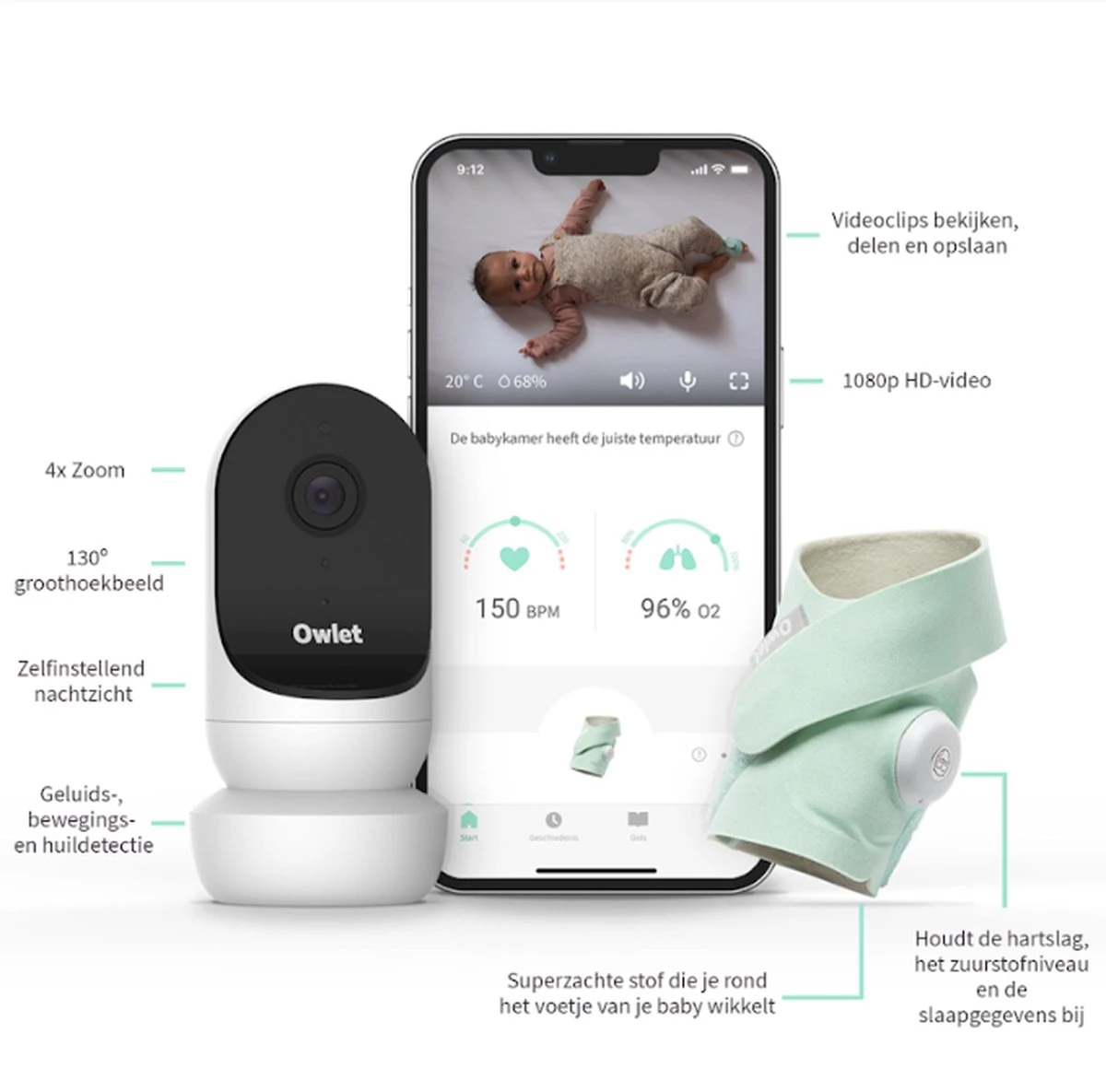 Monitor Duo biedt de intelligentie van onze bekroonde Smart Sock met de Owlet Cam 2.
