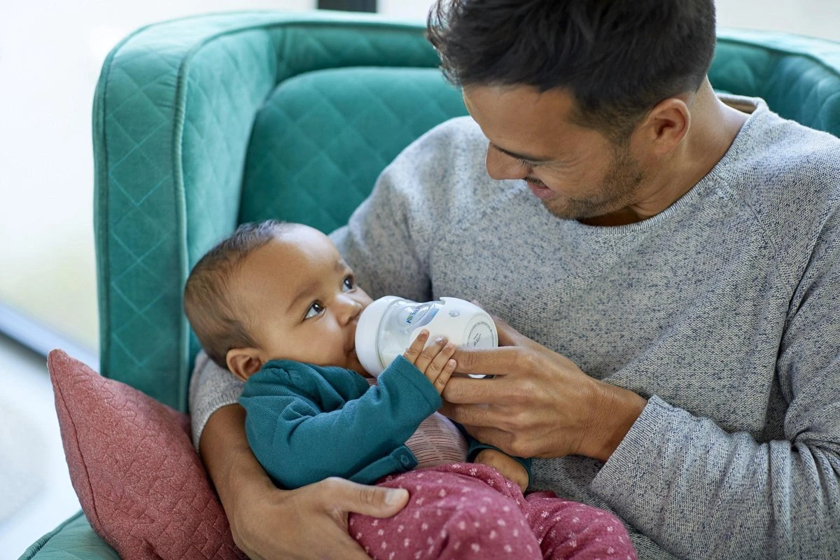 Met de slimme babyfles kun je je baby op een zo natuurlijk mogelijke manier flesvoeding geven. De houder past op alle plastic Philips Avent Natural-babyflessen van 125 ml. Maak het flesje klaar zoals altijd, bevestig de houder en geniet samen met je baby van de voeding.