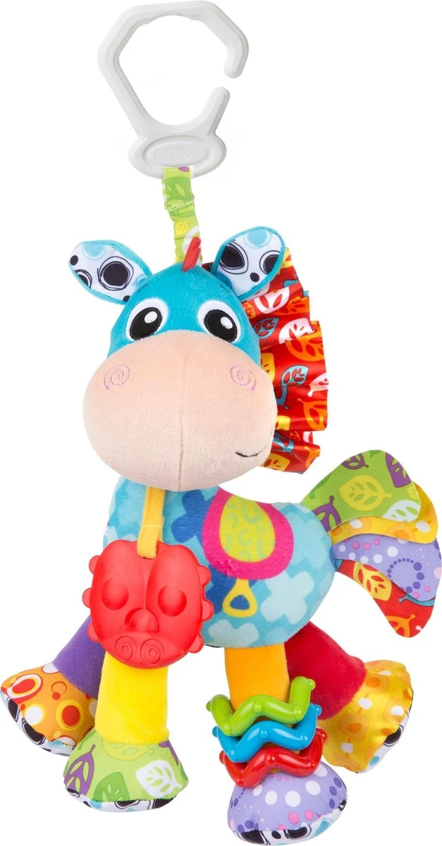 - Clip Clops manen, staart en pluche lichaam nodigen baby uit om verschillende texturen aan te raken en te ervaren