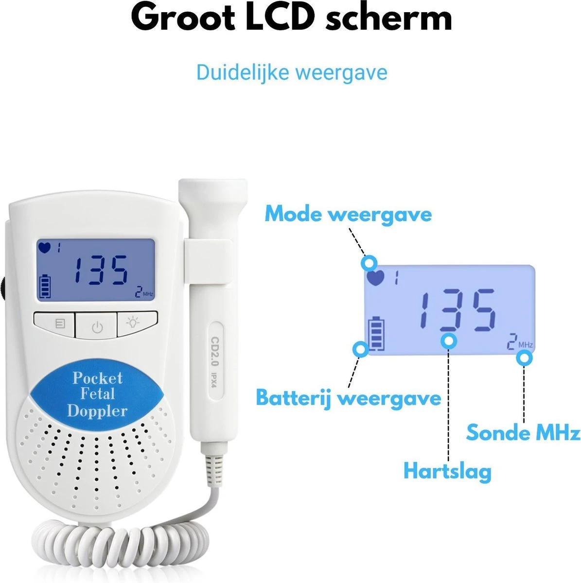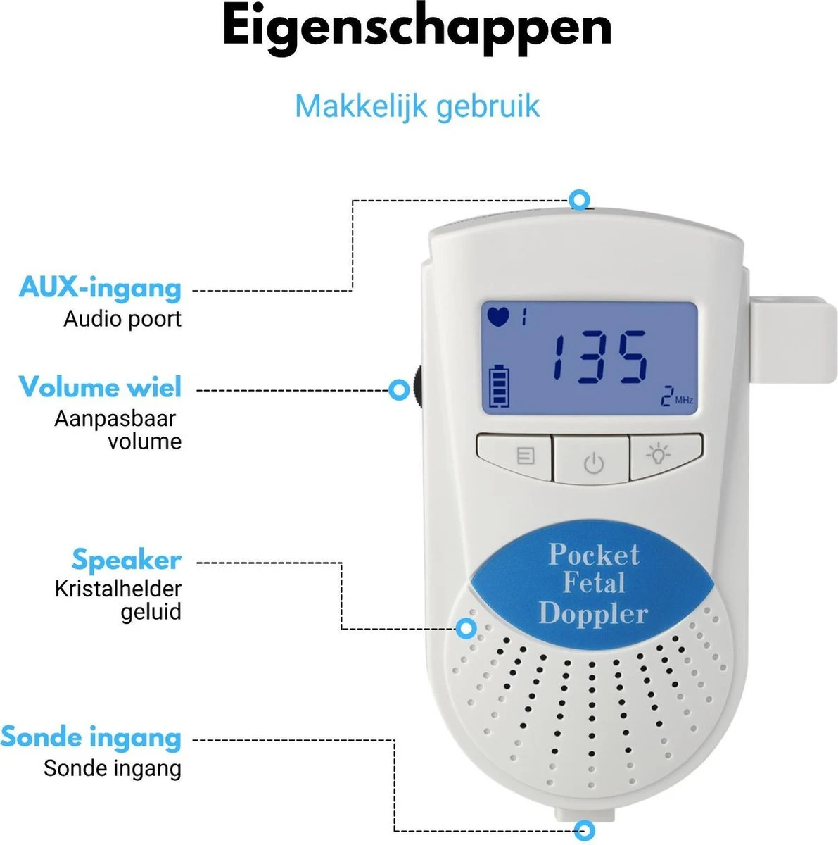Ook hebben wij in de e-mail campagne die je krijgt een Nederlandse handleiding erin gezet. In de verpakking zitten batterijen en een tube doppler gel bij zodat je meteen aan de slag kunt! Het zit in een mooi opbergdoosje waardoor het goed bewaard kan worden.
