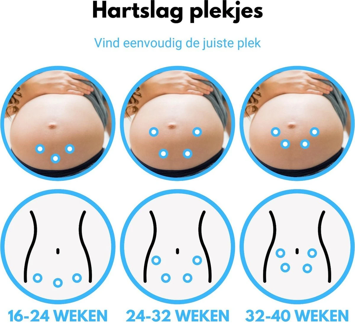 Let op: Het kan soms even duren voordat je de hartslag van jouw baby hoort. Het is afhankelijk van de ligging van de baby hoe goed en hoe duidelijk de hartslag hoorbaar is.