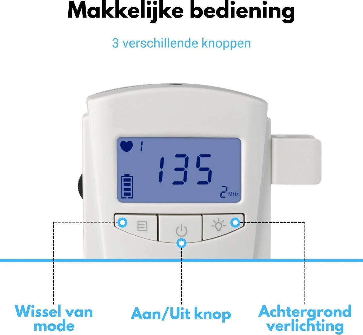 De Doppler zorgt ervoor dat je op elk moment van de dag naar het kloppende hartje van jouw baby kunt luisteren en tevens de hartslag af kan lezen van het digitale scherm. Dit is mogelijk vanaf 16 weken. De hartmonitor werkt met geluidsgolven en is daardoor geheel onschadelijk voor je baby.