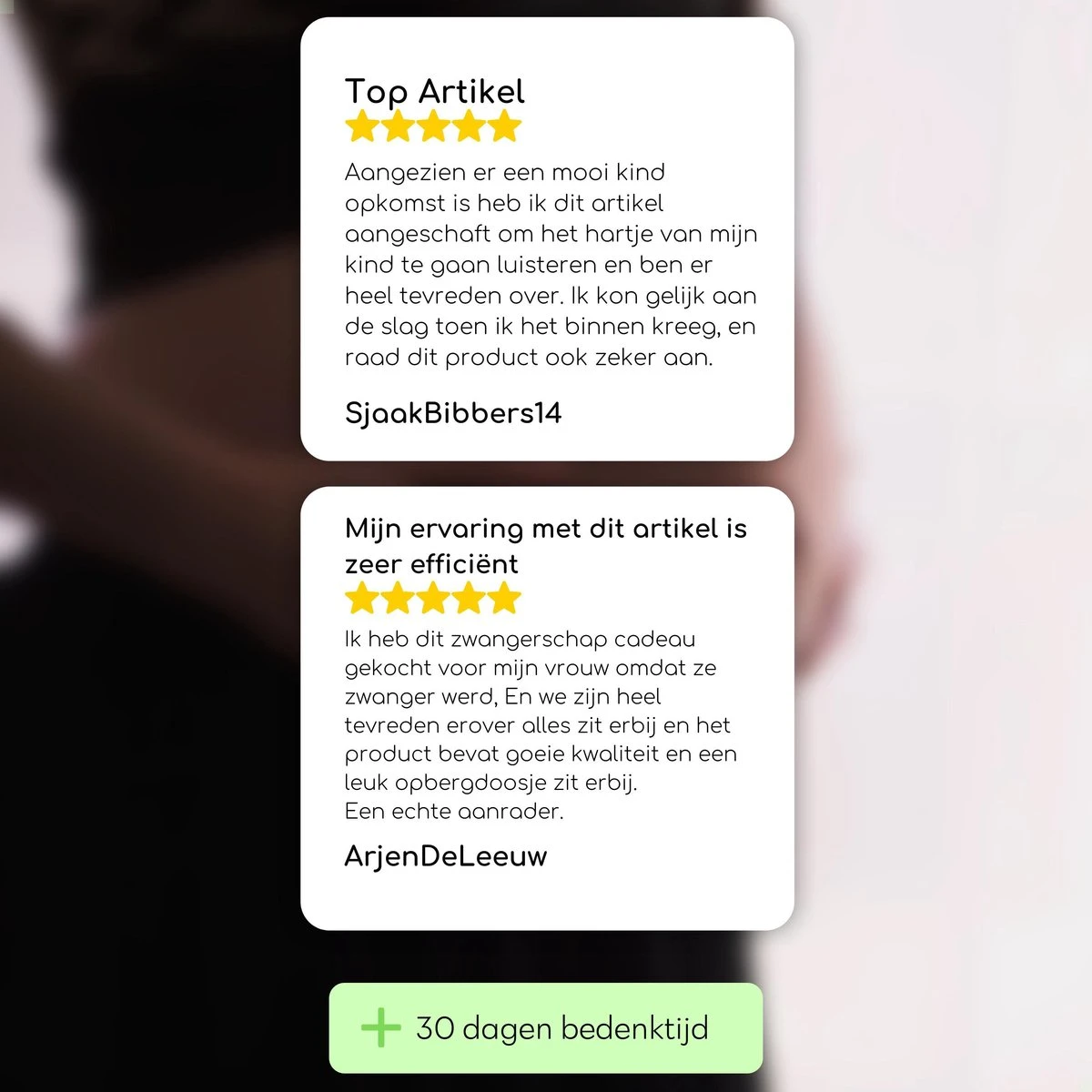 Onze Doppler is DE musthave voor ieder koppel waarvan de vrouw in verwachting is. Het is zo prachtig om samen met jouw geliefde of familie de hartslag te kunnen beluisteren van jou ongeboren kindje. Dit is de meest complete set voor het ultieme zwangerschapscadeau!