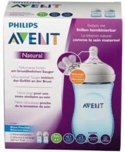 Philips Avent Natural Babyfles – SCF030/27 Babyfles (0m+) Voor Langzame Toevoer – 2 Stuks