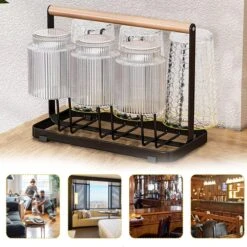 Flessenrek – Droogrek Babyfles – Flessen Rek Baby – Flessendroogrek – Afdruiprek – Afwasrek – Flessenrekje – Lekbak – Égouttoir – Zwart Met Houten Handvat – Vetalo