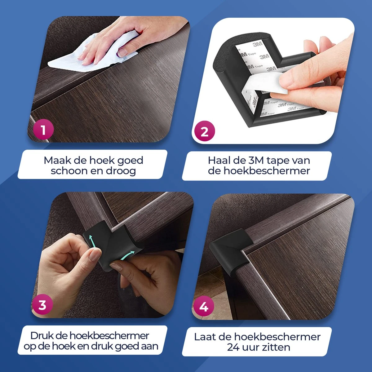 · Eenvoudig te bevestigen – Bij de hoekbeschermer set wordt tape meegeleverd waarmee je de hoekbeschermers eenvoudig aan de hoeken kunt beschermen. De hoekbeschermers zijn hierdoor al binnen enkele minuten bevestigt.