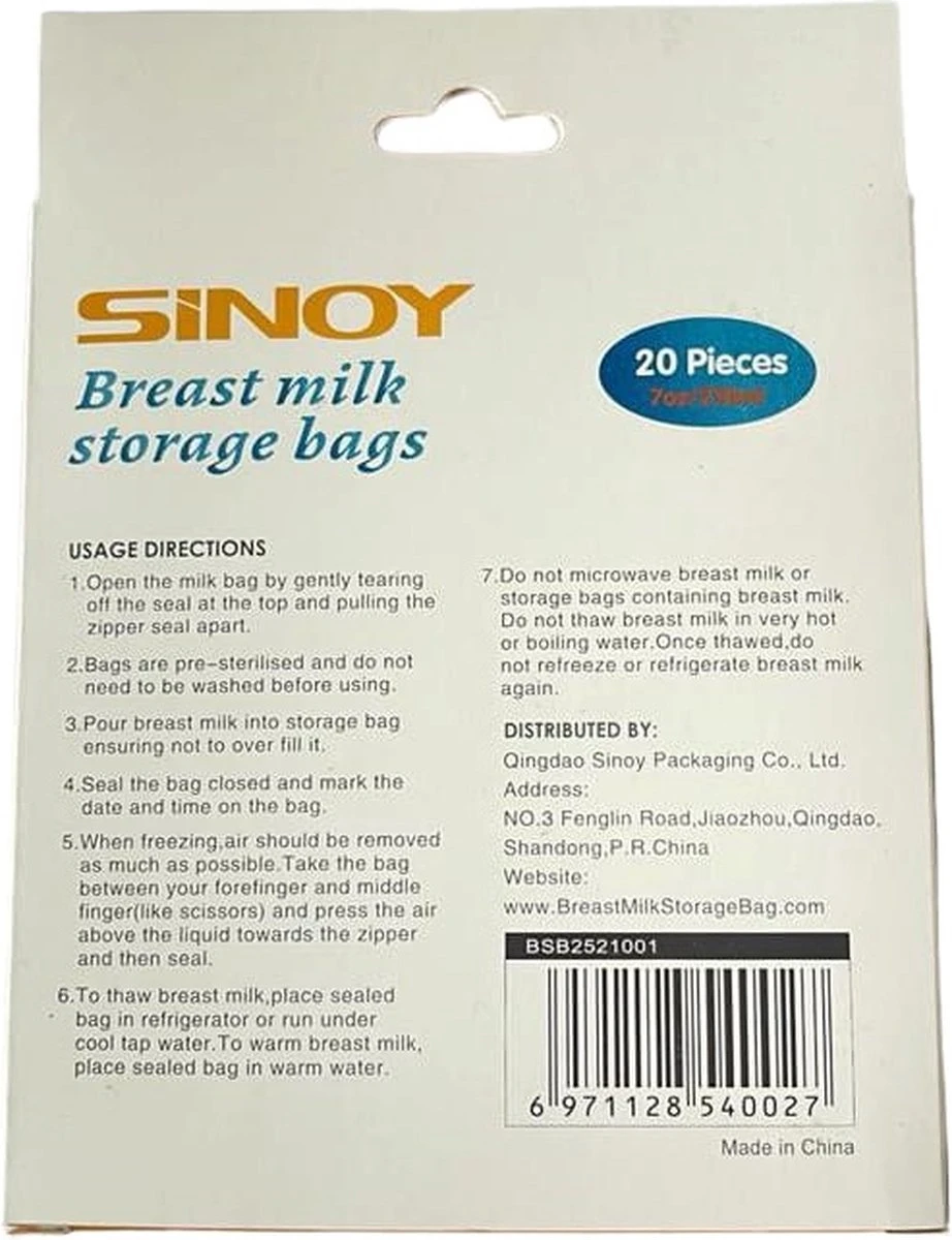 De moedermelk bewaarzakjes van SINOY is de ideale oplossing voor het bewaren, vervoeren en verwarmen van uw moedermelk. De gebruiksvriendelijke platte vorm is ruimtebesparend en zorgt ervoor dat de moedermelk gemakkelijk en hygiënisch kan worden ontdooid. Ook hebben de zakjes op de voorkant een schrijfvlak waar u een naam, datum en tijdstip op kunt schrijven.