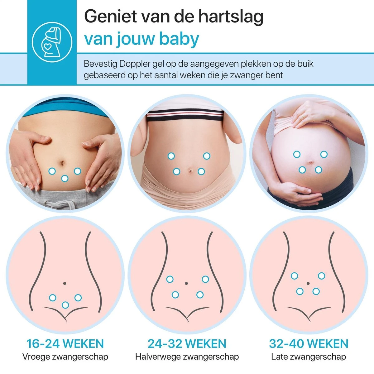 Het gebruik van het apparaat is makkelijk, maar het kan wel zijn dat je even moet oefenen voordat je de hartslag hoort. Of je de hartslag kan horen hangt namelijk af van de manier waarop jouw baby in je buik ligt. Het is dus volkomen normaal als je deze niet meteen de eerste keer kan horen. Probeer op een andere plaats op de buik opnieuw tot je de hartslag hoort. Moest het nog steeds niet lukken, dan helpt jouw arts je graag verder met het gebruik.