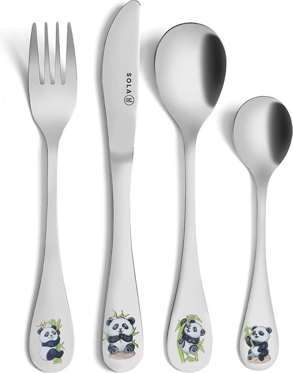 Deze Sola Pandadieren Kinderbestekset 1 persoons, 4 delig bevat