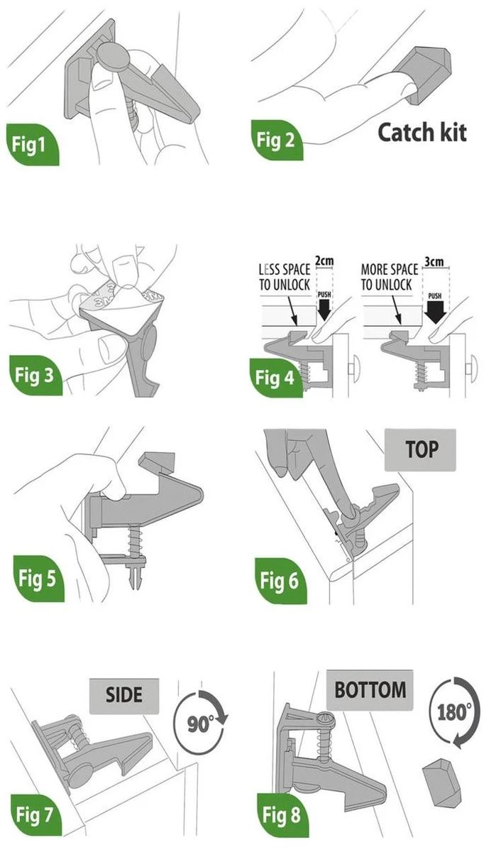 Houd kastdeurtjes en lades dicht ter bescherming van baby’s en kinderen, zonder ontsierende sloten op de buitenkant! Voorkomt verwonding en/of vergiftiging doordat kinderen weggehouden worden van de potentieel gevaarlijke inhoud van lades en kasten.