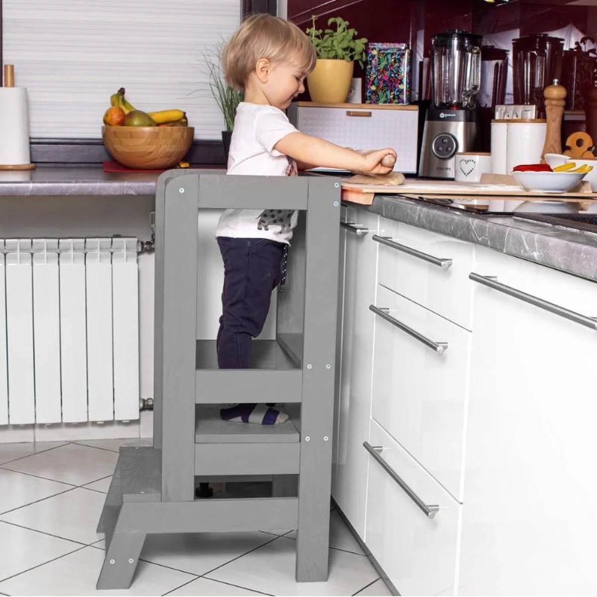 Het grote voordeel van de keukenhulp is de mogelijkheid om het platform op 3 niveaus te verstellen – 20, cm, 35 cm of 51 cm. Verwijder gewoon de beweegbare plank en monteer deze op een van de 3 mogelijke hoogtes. De ingebouwde vorm van het product maakt het kind volkomen veilig bij het samen met de ouders bereiden van verschillende soorten maaltijden in de keuken. De fabrikant zorgde ook voor details zoals het schuren van de randen
