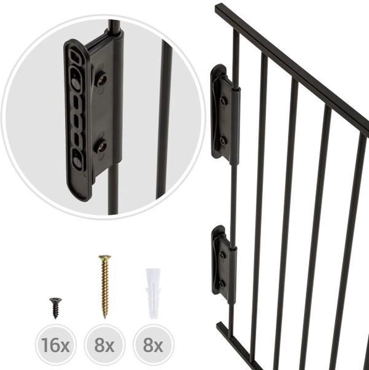 U kunt het hek aan de muur bevestigen, met de meegeleverde montage materialen, maar u kunt het stabiele hek ook gebruiken zonder montage.