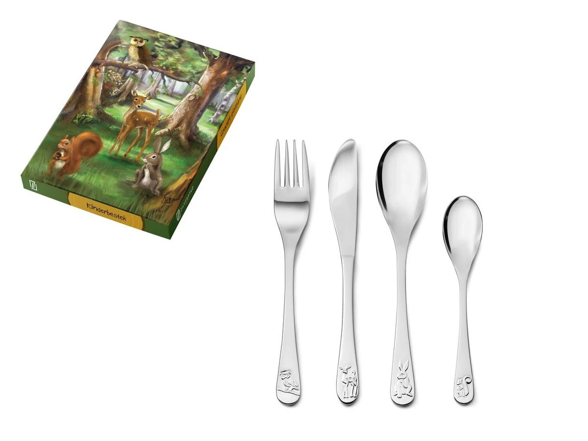 Op zoek naar een (kraam)cadeau? Van dit leuke besteksetje met bosdieren wordt iedereen blij. Het thema is bosdieren en op het bestek zijn een hert, eekhoorn, haas en uil gegraveerd. Het besteksetje is gemaakt van RVS 18/10. Poetsen is niet nodig en het besteksetje mag in de vaatwasmachine.