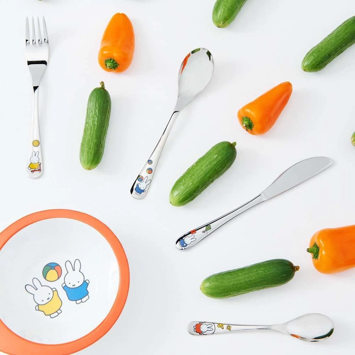 Op zoek naar een (kraam)cadeau? Van dit leuke besteksetje van Nijntje wordt iedereen blij. Het thema is ‘Nijntje speelt’ en op het bestek zijn afbeeldingen van een spelende Nijntje gegraveerd. Het besteksetje is gemaakt van RVS 18/10. Poetsen is niet nodig en het besteksetje mag in de vaatwasmachine.