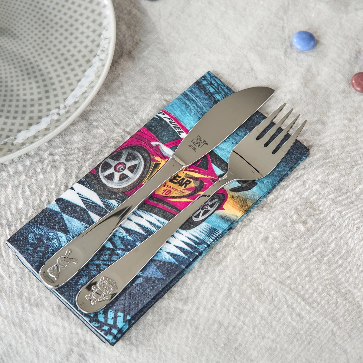 Kinderen stellen eisen – ook aan tafel. ZWILLING weet wat kinderen graag willen: het kinderbestek van TWIN Kids. Of het nu ingestanste motieven zijn, een neutraal design of kleurrijke afbeeldingen – ZWILLING heeft het bestek dat uw kinderen aanspreekt. Het TWIN Kids bestek werd speciaal voor de kleine handen van kinderen ontworpen en is afwasmachinebestendig.