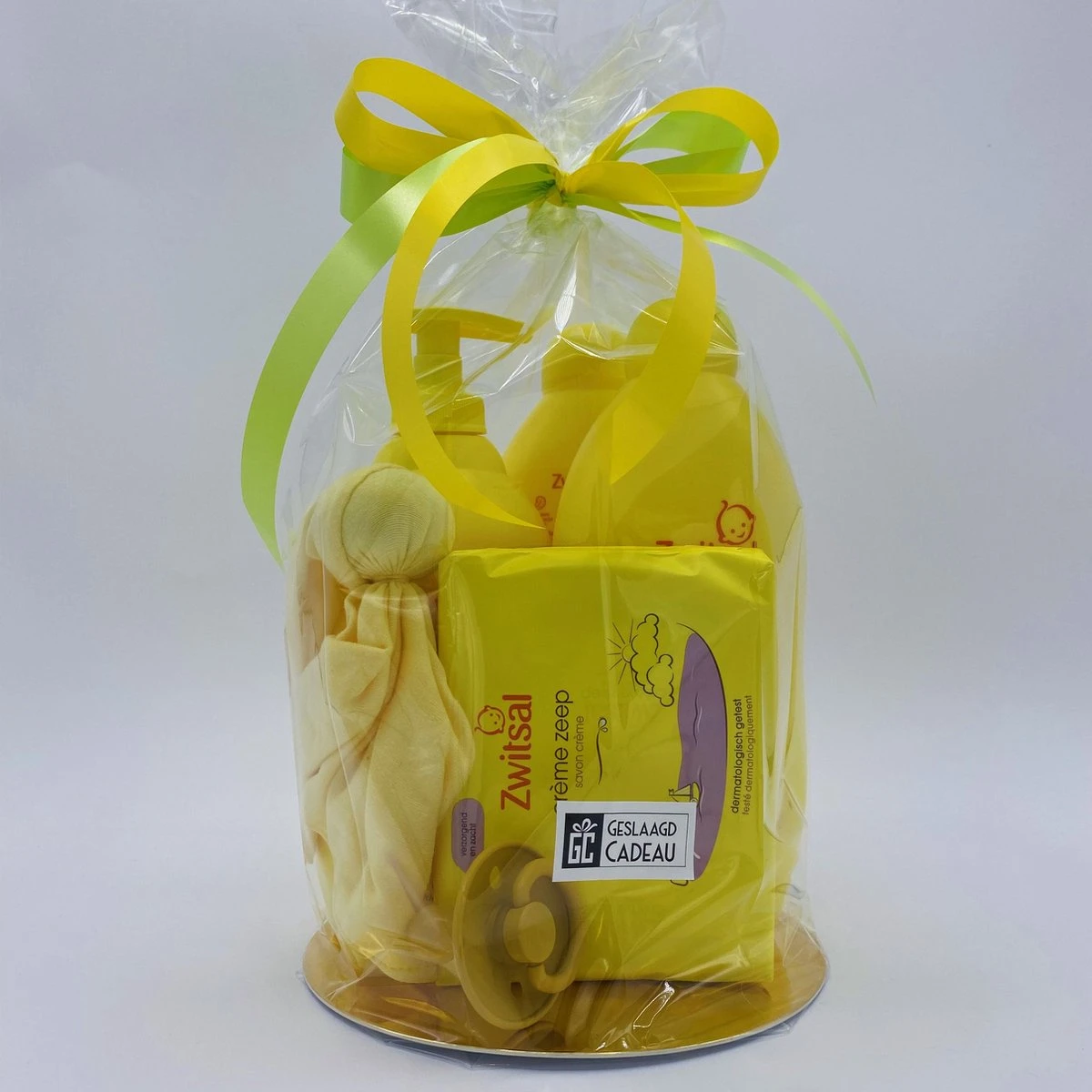 Op zoek naar een groot kraamcadeau? Dan is dit grote Zwitsal pakket wat je zoekt. Het bevat Zwitsal shampoo, bodylotion, creme zeep en een zeepvrij schuimbad. De flessen van 400ml zijn lekker groot, voor veelvoudig gebruik. Daarnaast bevat het pakket een Bibs speen en een klein knuffeltje. Kortom een perfect babyshower cadeau om te geven. Een Geslaagd Baby Cadeau!
